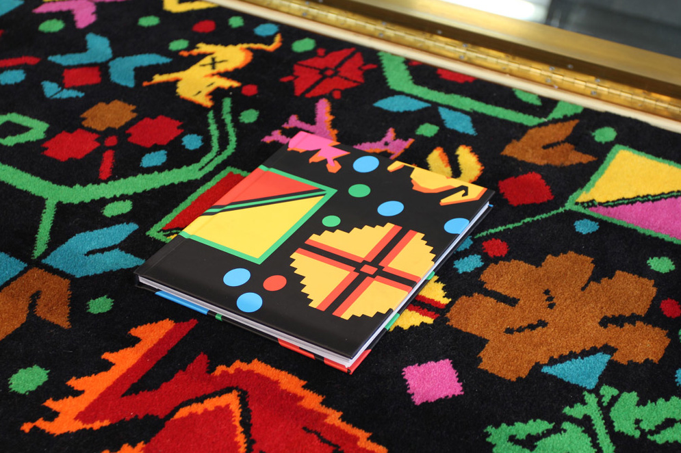 This whole process is methodically documented in a book that lies atop the carpet with a cover picturing the pattern below it. In this optical play, the book imbeds its surface (and the very surface it mirrors) with the story of its own making. The narrative is controlled and tedious but instills the piece with a visual history that attempts to establish its own symbolic import. Ferrer's excessive attention to the construction and deconstruction of this pattern is less about formal necessity and more of an attempt to underscore the material fissures present in all symmetrical forms. Through the laborious restructuring of carpet and the book's sculptural trompe l'oeil Ferrer's work poses the moment of the seam as one of both rupture and confluence.