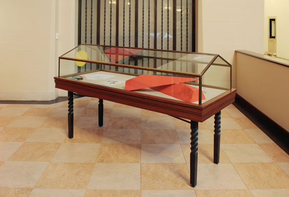 8. This piece originally featured in an exhibition I curated (and conceived with Joanna Fiduccia) in Sèvres just outside of Paris at La générale en manufacture in 2010. The exhibition was called, "In which the wind is also a protagonist". It was a show about crimes, clues, and the wind. I was interested in Simon’s piece due to its complex relationship to the wind, and how it actually let the wind inside the exhibition space, incorporating it as an element (in fact, a certain kind of ornate spoon, such as can only be bought in Venice, and which was associated with the Scirocco that purportedly brings the plague to Venice from North Africa in Thomas Mann’s Death in Venice, was inserted in a window in order to keep it open, while the two red, modernist looking sculptures were inspired by two public sculptures Simon had seen in southern California, and which were reminiscent of the Santa Ana wind. These prop the door open, like improbable door stops, making it such that the wind can pass freely in and out of the space). However, the work was in the collection of Andrew Ong, a collector based in New York. This was problematic, because La générale, being a kind of glorified, quasi-institutional squat, could not afford to have the piece shipped from New York to Paris. And even if we could have afforded the Fed-Ex, we would not have been able to properly insure it. So it was completely out of the question. We were about to abandon the inclusion of the work, when Simon suggested the possibility of having a replica/exhibition copy made in Paris with the consent of Andrew. Andrew, whom I had met in New York on a previous trip, generously consented, and we had the replica made strictly according to Simon’s instructions. If I remember rightly, Simon requested that, once the exhibition was over, the copy be transported to him in Berlin. But just large enough to not fit in any but the largest piece of luggage (and therefore wholly inimical to Easy-Jet standards, my preferred, by financial default, European carrier), these two objects languished in my closet in Paris for the next two years, throughout which time I, and apparently Simon, completely forgot about them (One of the objects was significantly damaged in the de-install as well, a factor which contributed to the, admittedly unprofessional, deflation of my inspiration to carry out Simon’s wish). - Chris Sharp