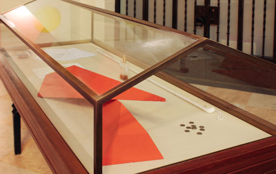 7. A common property of all transparent elements is to filter light, and in this sense to be "a body" without shadow. For everything, losing its shadow (and its limits) is not a neutral passage, but a strong ontological change. In the initial exhibition (from which this powder is from) the protagonist, the first actor, was the sunlight, what circumscribes the object, establishing time and space, made visible by the rhythms of shadows. All elements become merely "circumstance", pure semantic fields without body. A transparent object can filter light, and without shadow (or with a weak shadow), has less presence in reality, compared to one with a shadow. Its limits are feeble, and an object without limits is indeterminate in the continuity of space and time. The shadow is the first step to build and organize time. - Luca Francesconi