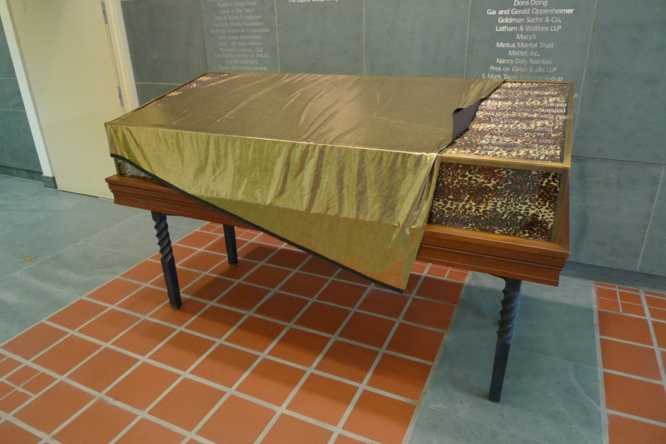 Andrews’ use of the Picture Files is notable; like her installation, the collection quickly reveals the complicated nature of classification. Consisting of an assortment of photographs and magazine clippings arranged alphabetically by subject heading, the Picture Files reveal a complex relationship between the pictures and the subject designations they belong to. Andrews’ piece mimics this loose system but unites - through means both conceptual and formal - a variety of seemingly unrelated objects (Snoopy, cherry-wood cabinetry, leopard-fur prints, gold textiles, sunglasses) under the rubric “Cats and Dogs.” While poking fun at what a catalog can be Andrews’ title relies upon automatic association, ultimately undermining it. What do all these objects really have in common? By pointing to how we make conceptual and perceptual associations, Andrews reveals the complex mechanics of how one makes sense of the world. Yet in Andrews’ installation the logic of these combinations do not always add up, reminding us that the original – what the catalog directs us to – is complex and often unclassifiable.