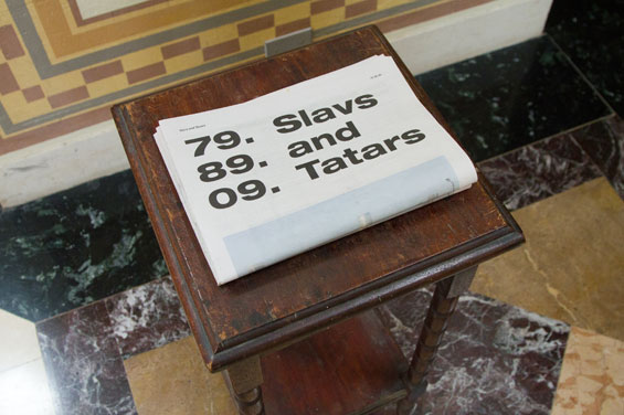 Slavs and Tatars is a faction of polemics and intimacies devoted to an area east of the former Berlin Wall and west of the Great Wall of China known as Eurasia. The collective's work spans several media, disciplines and a broad spectrum of cultural registers (high and low) focusing on an oft-forgotten sphere of influence between Slavs, Caucasians and Central Asians.