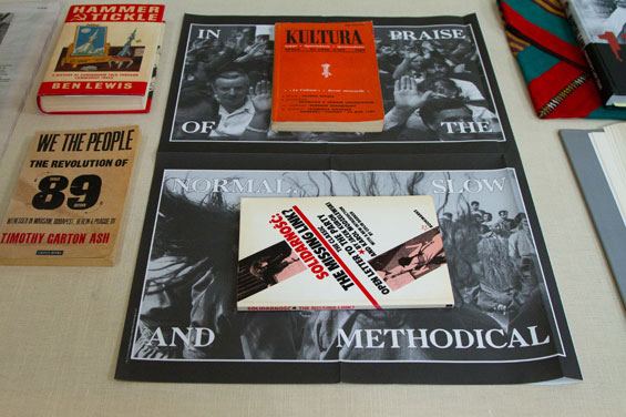 The archive was first presented at Birmingham's Eastside Projects as part of Book Works' Again a Time Machine exhibition and has since become an integral part of the Friendship of Nations: Polish Shi'ite Showbiz project. It has traveled as a mobile library that would make Ali Shariati proud (if perturbed at the polyphony of voices), to such diverse destinations as Prague, Gdańskand and Vancouver. Though the collective has attempted to include a significant mix of both primary and secondary sources, the library is in no way intended to be exhaustive nor is it an endorsement or indication of their convictions: rather, this collection is only a testament to their curiosities. Dear 1979, Meet 1989 is being presented in tandem with Friendship of Nations: Polish Shi'ite Showbiz on view at the REDCAT from February 10 - March 24, 2013.