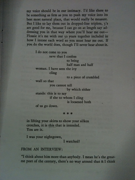 "This morning when I took a walk I thought about a talk I'll give next fall (I've been invited to your school) about Poetics.[...] I want to hand out Alice Notley's brilliant essay Dr Williams' Heiresses where she talks about how female poets like herself who externalize and twist internal daily life have hardly any female ancestors. The critic Kathleen Fraser thought that for not inventing some, Alice was a bad feminist. Alice Notley proved the possibility of writing poems no matter what; Kathleen Fraser is an academic." - Chris Kraus, I Love Dick